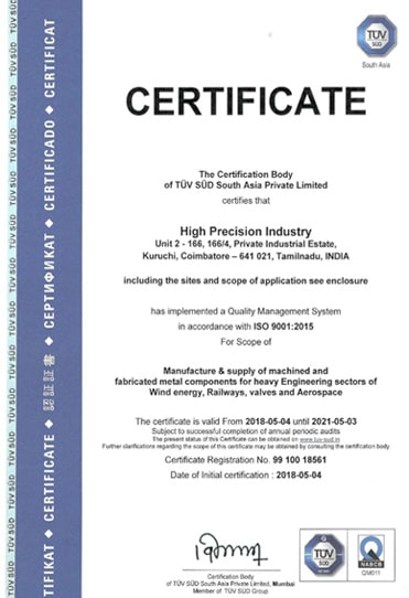 HIGH PRECISION INDUSTRY vision is improves our image globally and achieves exponential growth to leadership through world class products and service.
