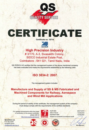 - Deliver Fabricated & Machined components to our customers with Quality and on time delivery.